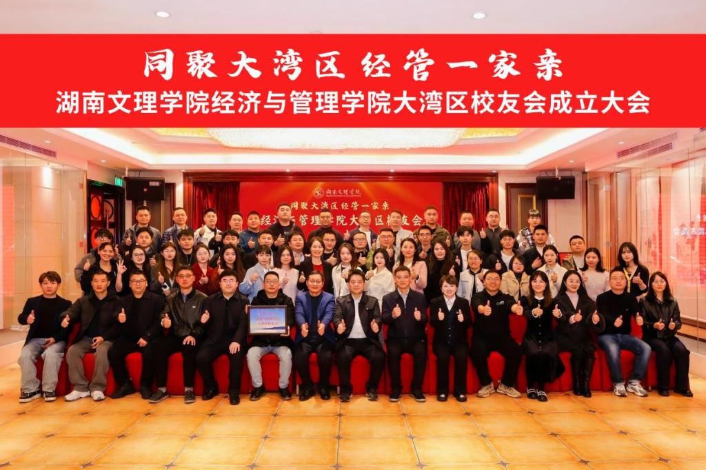 本网讯(经管学院 供稿)1月12日,湖南文理学院经济与管理学院大湾区校友会成立大会在深圳市宝安区举行。党委委员、副校长戴军出席会议并讲话。学校深圳校友会、长沙校友会、佛山校友会代表和来自深圳、广州、中山、珠海、东莞和佛山等大湾区的经济与管理学院校友代表70余人参加大会。成立大会由经济与管理学院党委书记王良波主持。